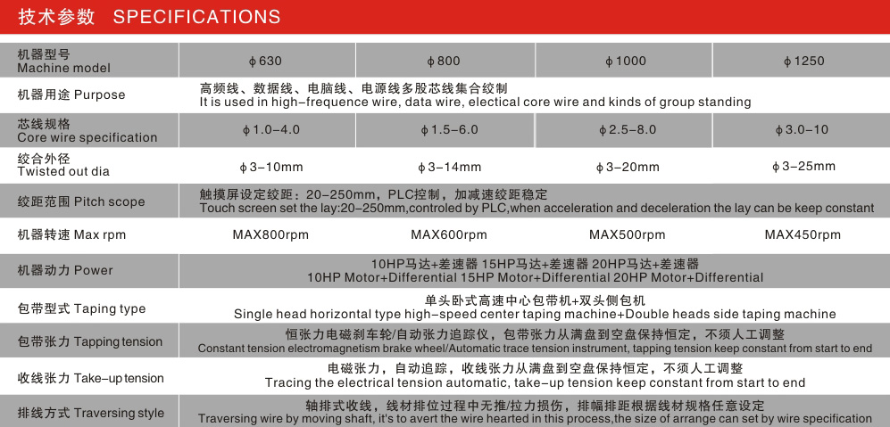 Suitable for PE or PVC coated core wire stranding and center wrapping tape or side of control cables, communication cables, data cables, coaxial cables, etc.