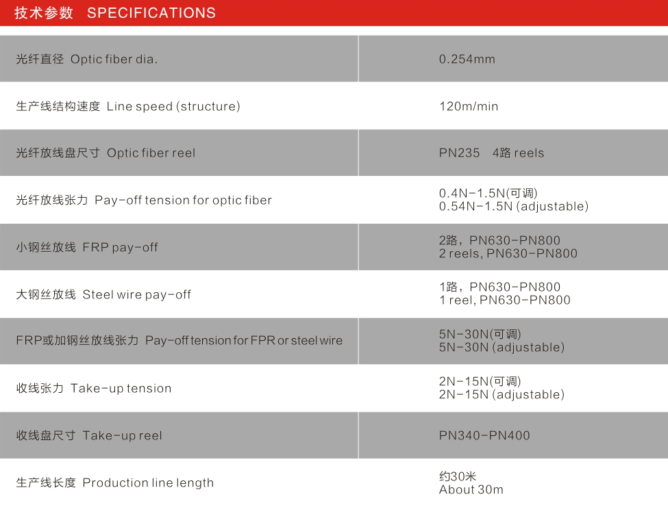 It is used to produce FTTH leather cable, and the extrusion material is suitable for PVC, PE, LSZH, etc.