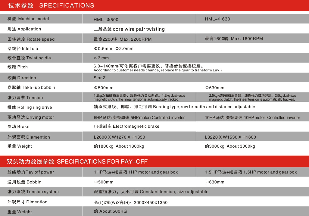 Φ500/Φ630 high-speed pair twisting + double-head power pay-off machine
